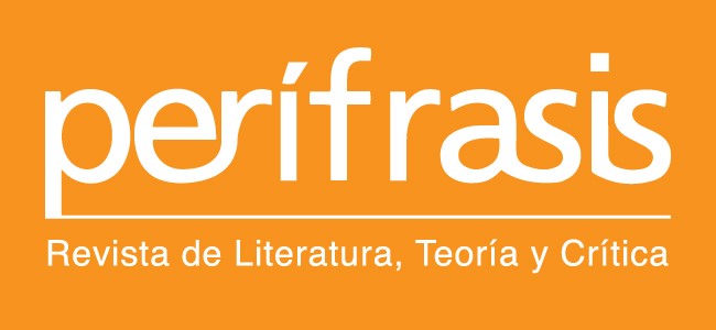 Banner Perífrasis. Revista de literatura, teoría y crítica. Fondo naranja letras blancas.