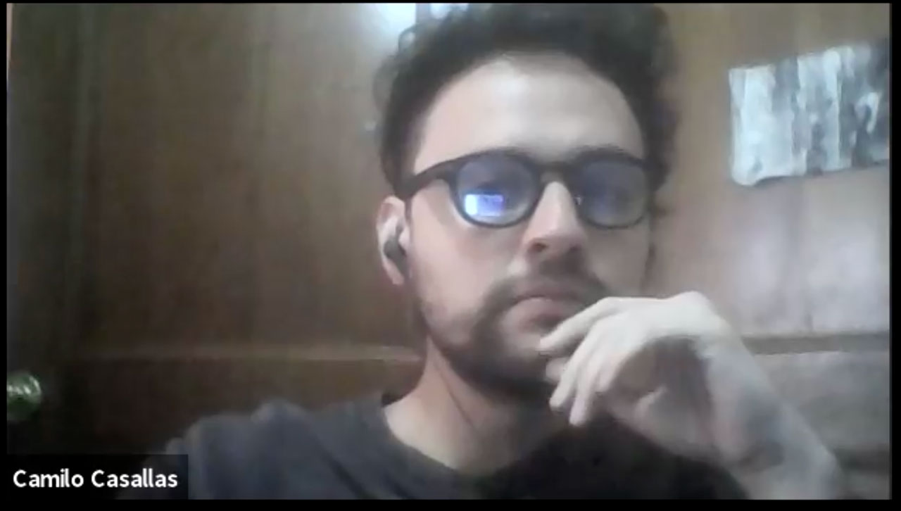 Camilo Casallas Torres, en charla de Zoom sobre el Kit de Supervivencia en el Mundo Editorial. Literato egresada de Los Andes, socio de Serifa Editores y cocreador del Kit.