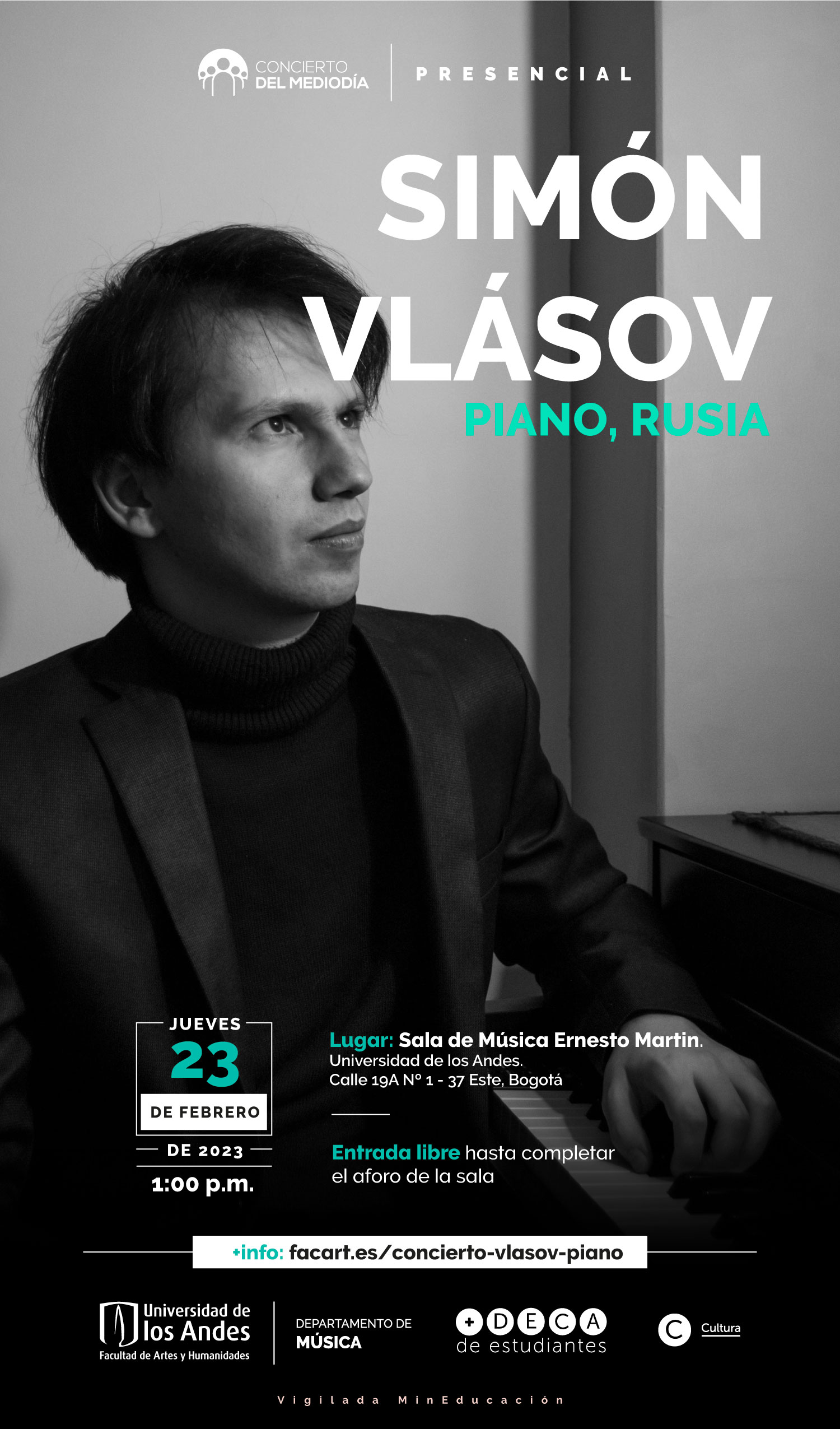 El concierto del mediodía presentará a Simón Vlásov (Rusia, piano) el próximo jueves 24 de febrero en la sala de música Ernesto Martin