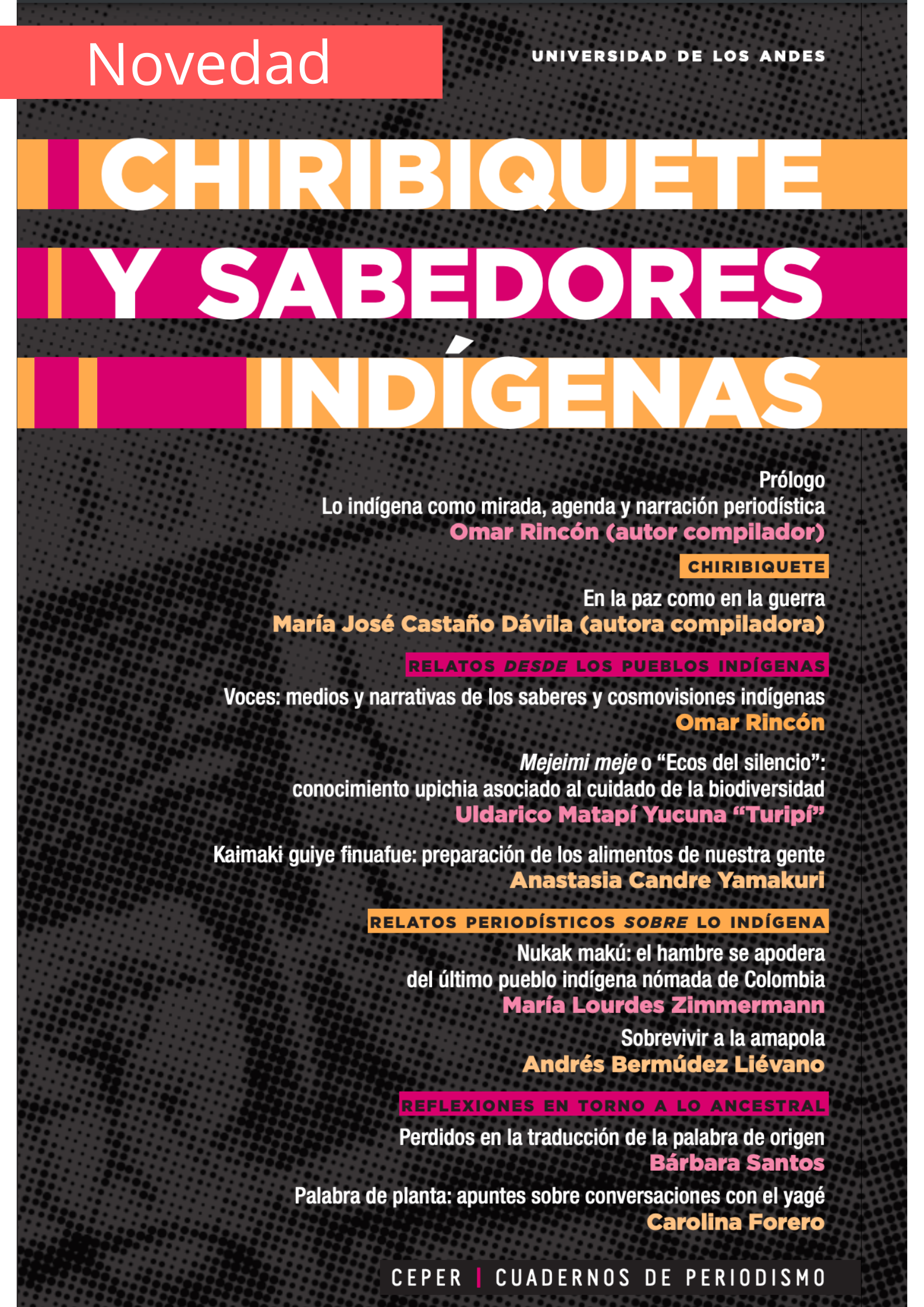 El problema fundamental del periodismo es el lugar de la enunciación: ¿quién habla, desde dónde y cómo lo hace? El periodismo indígena es el que se hace desde los pueblos, sus modos de narrar y sus lenguas; todo lo demás es lo que se dice sobre ellos y sus saberes ancestrales. Chiribiquete y sabedores indígenas presenta textos de ambas orillas, sobre diversas comunidades y aspectos de su vida y sus creencias. También hace un llamado a la necesidad de pasar a la enunciación desde los pueblos ancestrales, tanto en voces como en narrativas, formatos y agendas. Si escuchamos al pensamiento-tierra, los saberes y las estéticas indígenas, sabremos que a nuestro mundo le falta espiritualidad y que hay otros modelos de sociedad. Y de ahí deberían surgir otros periodismos posibles: aquellos de la tierra con mirada y política indígenas.