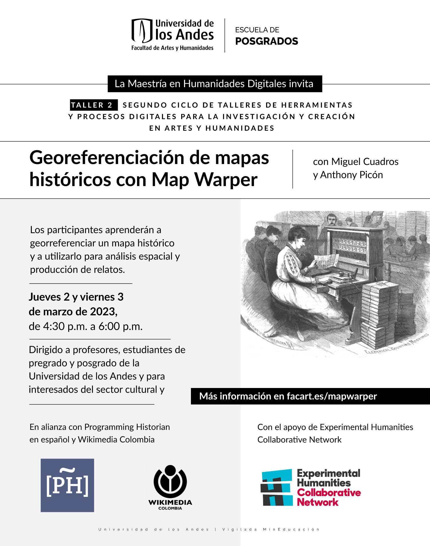 Afiche del taller Georeferenciación de mapas históricos con Map Warper María José Afanador
