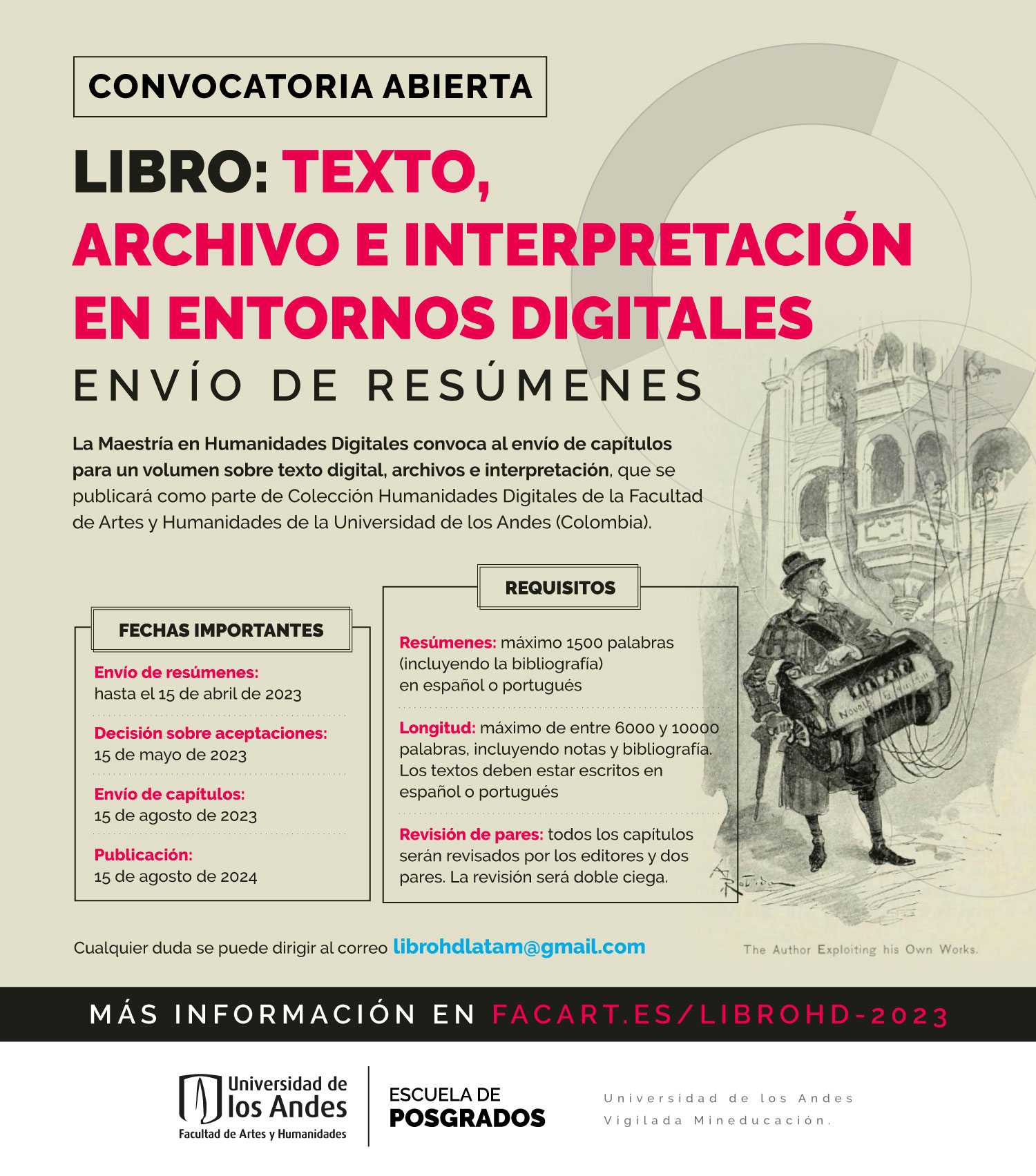 La Maestría en Humanidades Digitales convoca al envío de capítulos para un volumen sobre texto digital, archivos e interpretación, que se publicará como parte de Colección Humanidades Digitales de la Facultad de Artes y Humanidades de la Universidad de los Andes, Colombia.