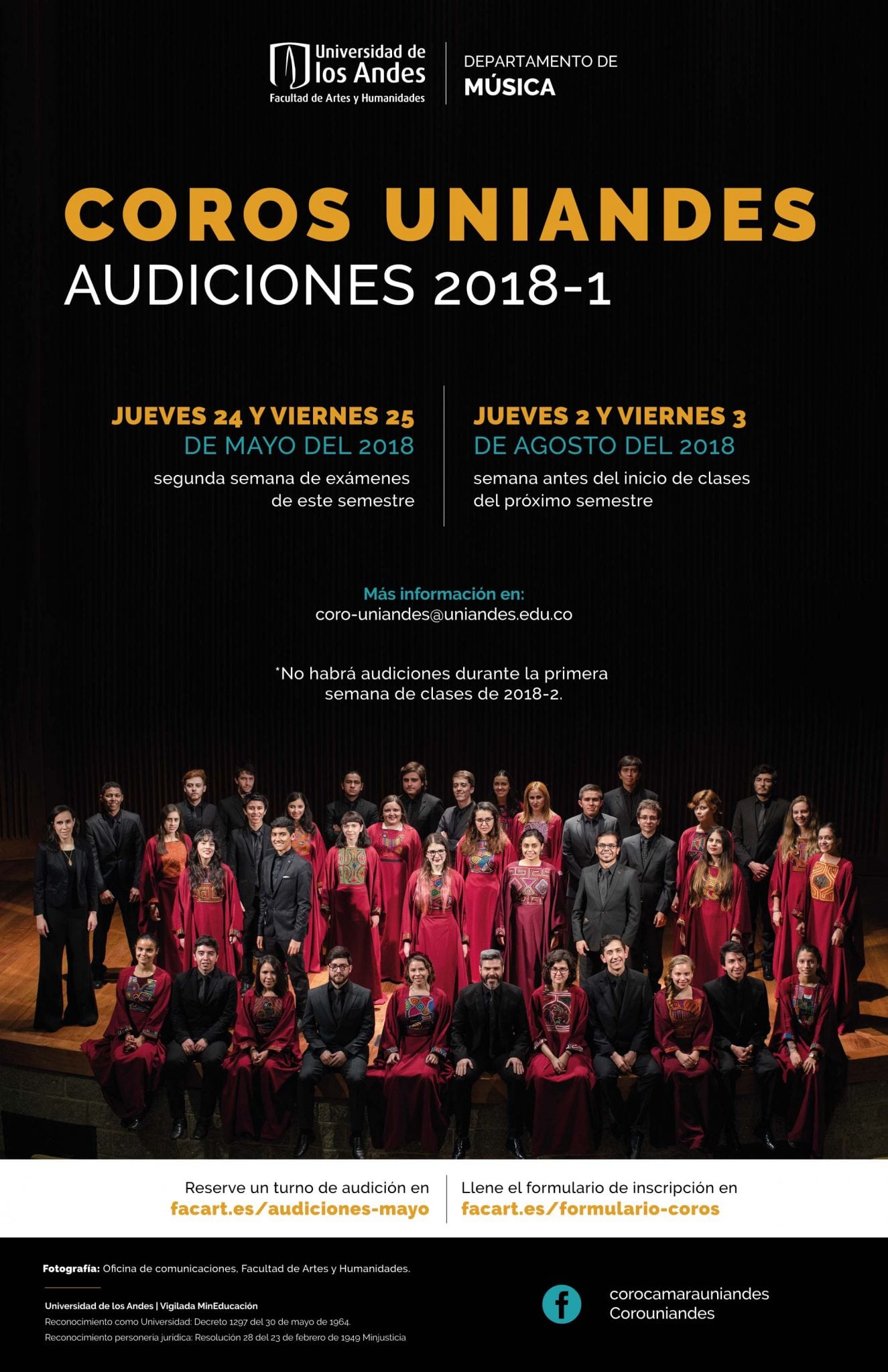 Audiciones para cantar en los coros de la Universidad de los Andes en 2018-2
