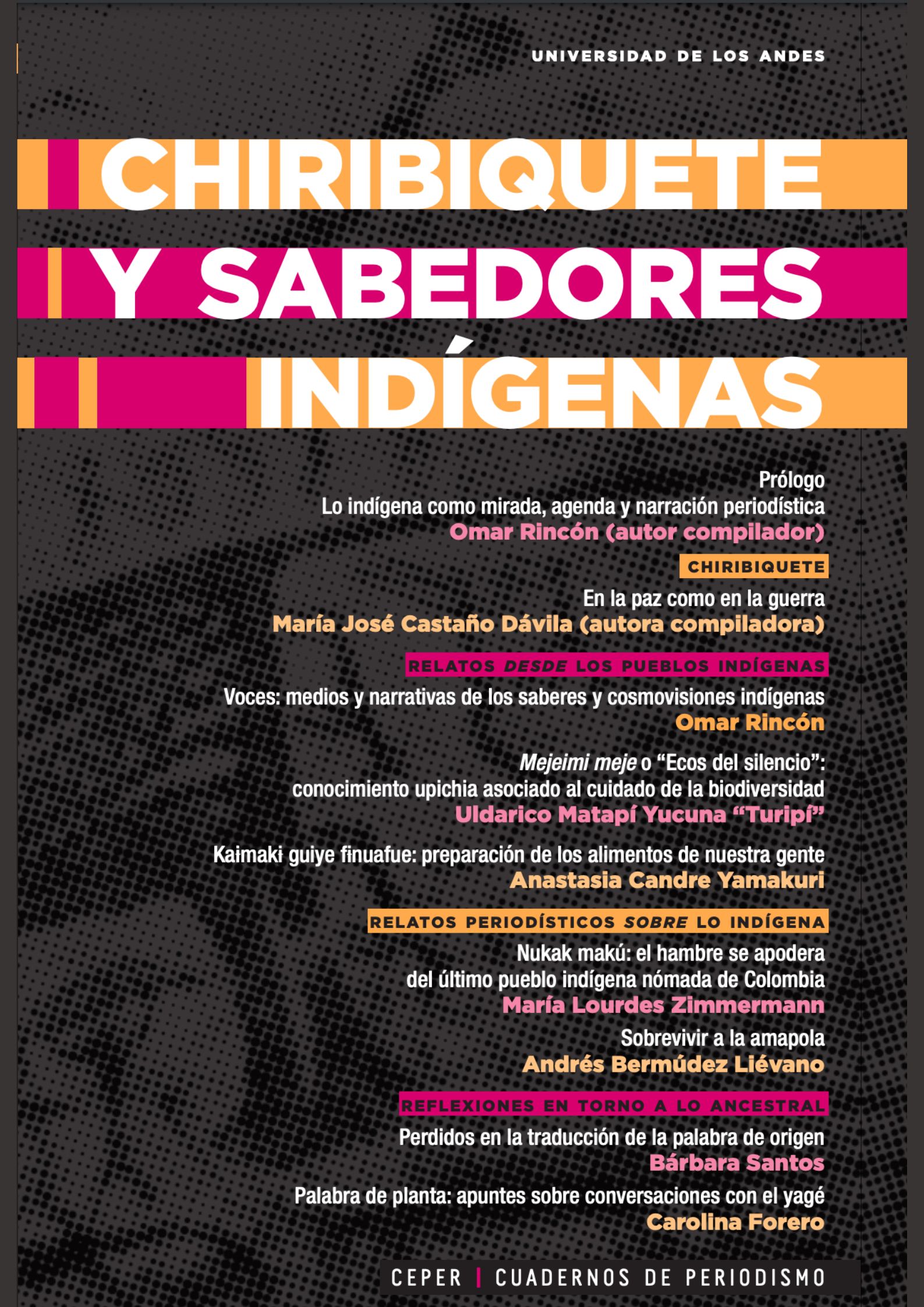 El problema fundamental del periodismo es el lugar de la enunciación: ¿quién habla, desde dónde y cómo lo hace? El periodismo indígena es el que se hace desde los pueblos, sus modos de narrar y sus lenguas; todo lo demás es lo que se dice sobre ellos y sus saberes ancestrales. Chiribiquete y sabedores indígenas presenta textos de ambas orillas, sobre diversas comunidades y aspectos de su vida y sus creencias. También hace un llamado a la necesidad de pasar a la enunciación desde los pueblos ancestrales, tanto en voces como en narrativas, formatos y agendas. Si escuchamos al pensamiento-tierra, los saberes y las estéticas indígenas, sabremos que a nuestro mundo le falta espiritualidad y que hay otros modelos de sociedad. Y de ahí deberían surgir otros periodismos posibles: aquellos de la tierra con mirada y política indígenas.